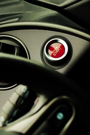 黒い内装のなかにひときわ目立つビビットな赤いボタンは、つい触れてみたくなりますね。