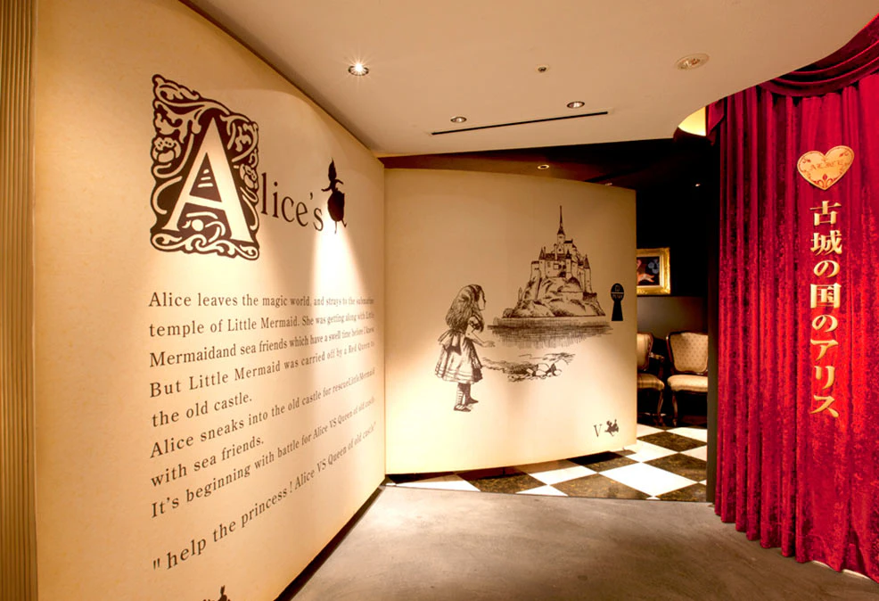 「古城の国のアリス」は、不思議の国のアリスをテーマにしたイタリアンレストラン。内装も料理もインスタ映えが狙えると話題です。入口からシャンデリアがきらめき、絵本の中のような内装は必見です。