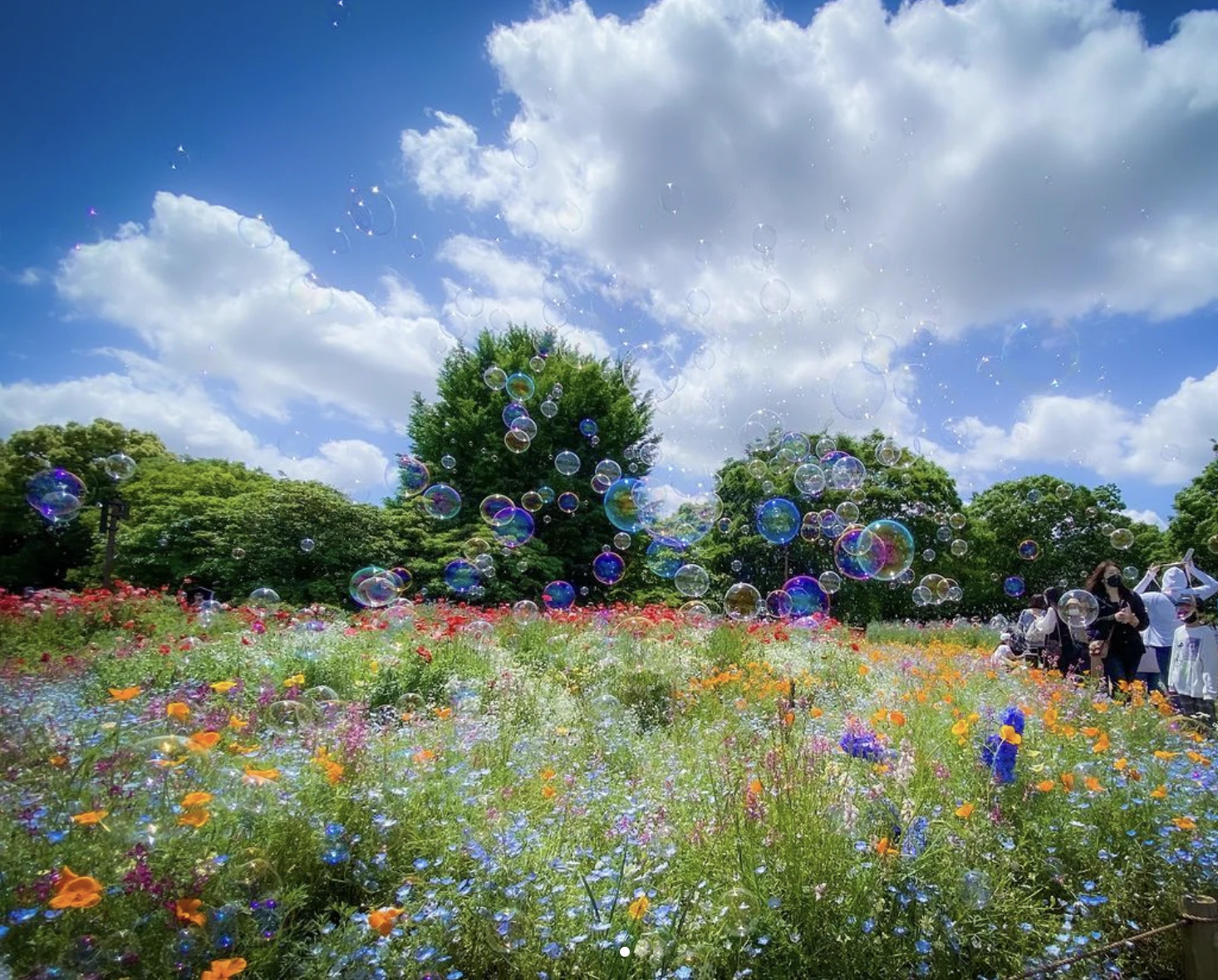 東京都立川市と昭島市にまたがる昭和記念公園は、四季を感じる色とりどりの花が咲き誇る写真スポット。春はチューリップ畑、夏はひまわりなど、訪れる時間や季節によって異なる雰囲気を楽しめます。