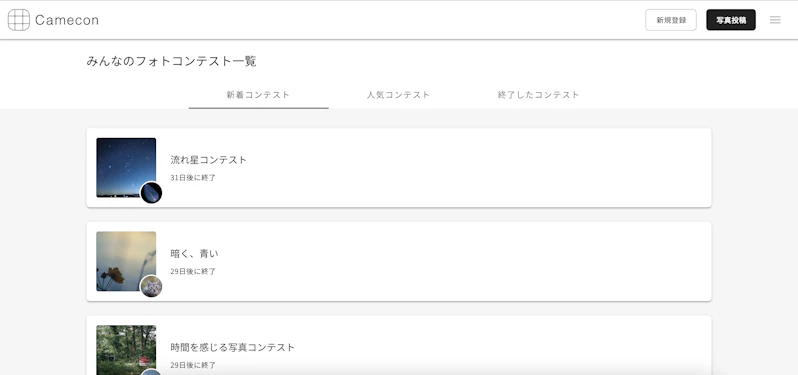 カメコン(Camecon)はWeb上でフォトコンテストを開催しているサービスです。
