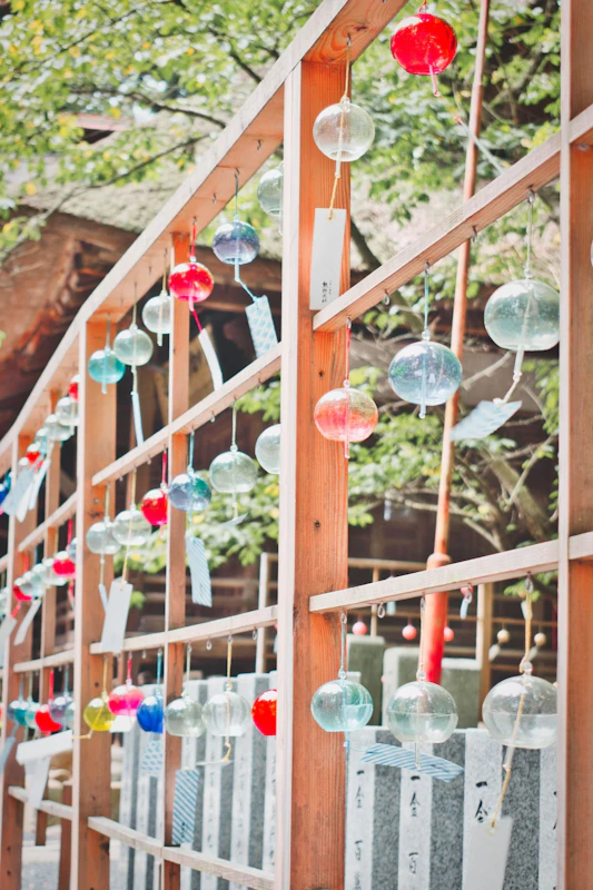 毎年6月〜9月には境内に色とりどりの風鈴が飾られ、目も耳にも涼を届けてくれます。