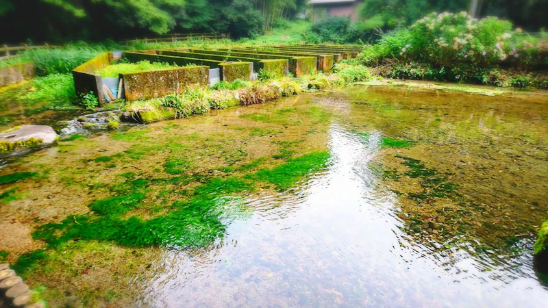 1日に3万リットルも湧き出るという水は、透明度が高く名水として知られています。