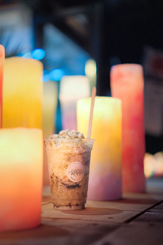 冷たいスイーツを照らすあたたかな光“キャンドルとピンス。”