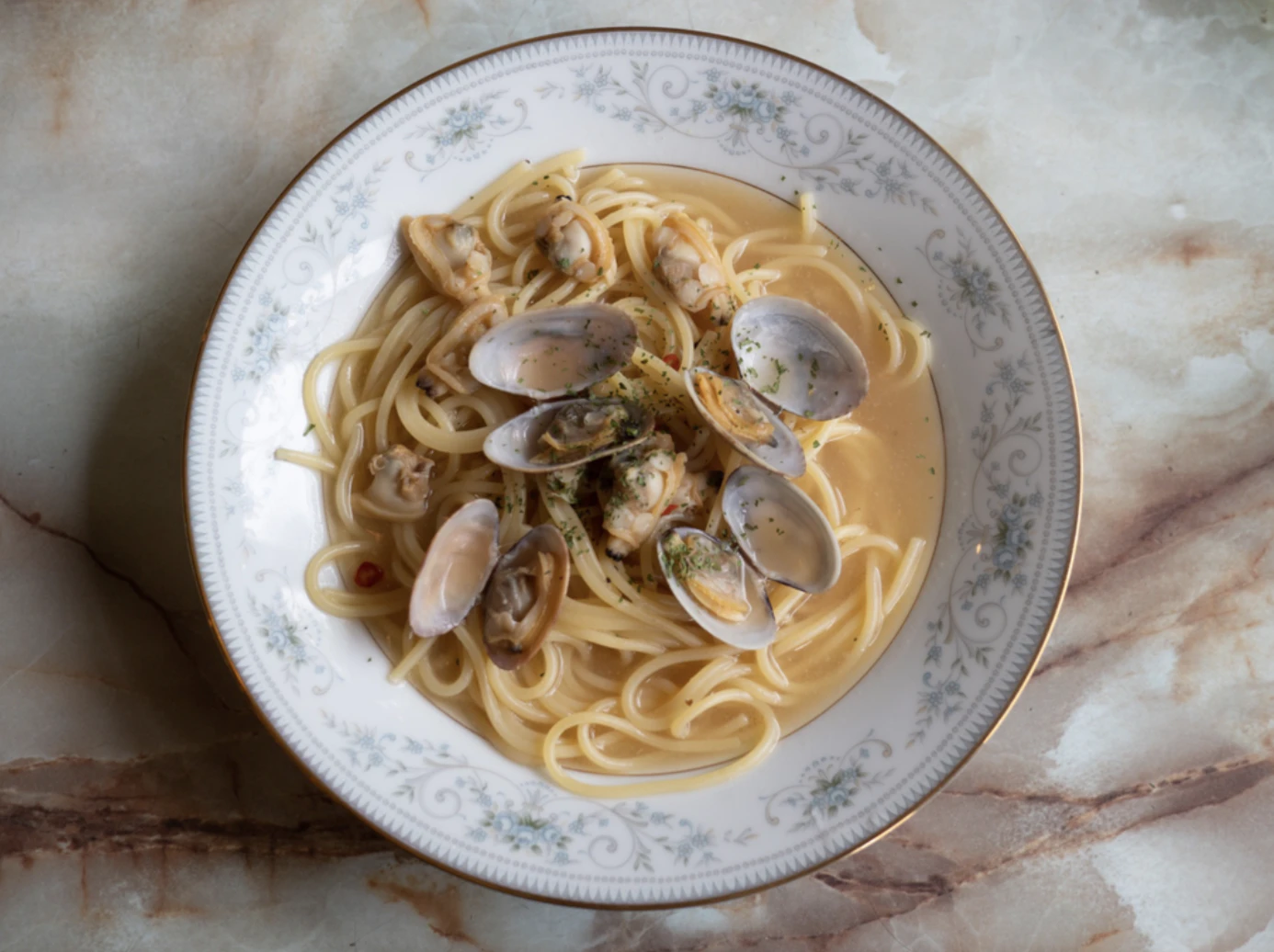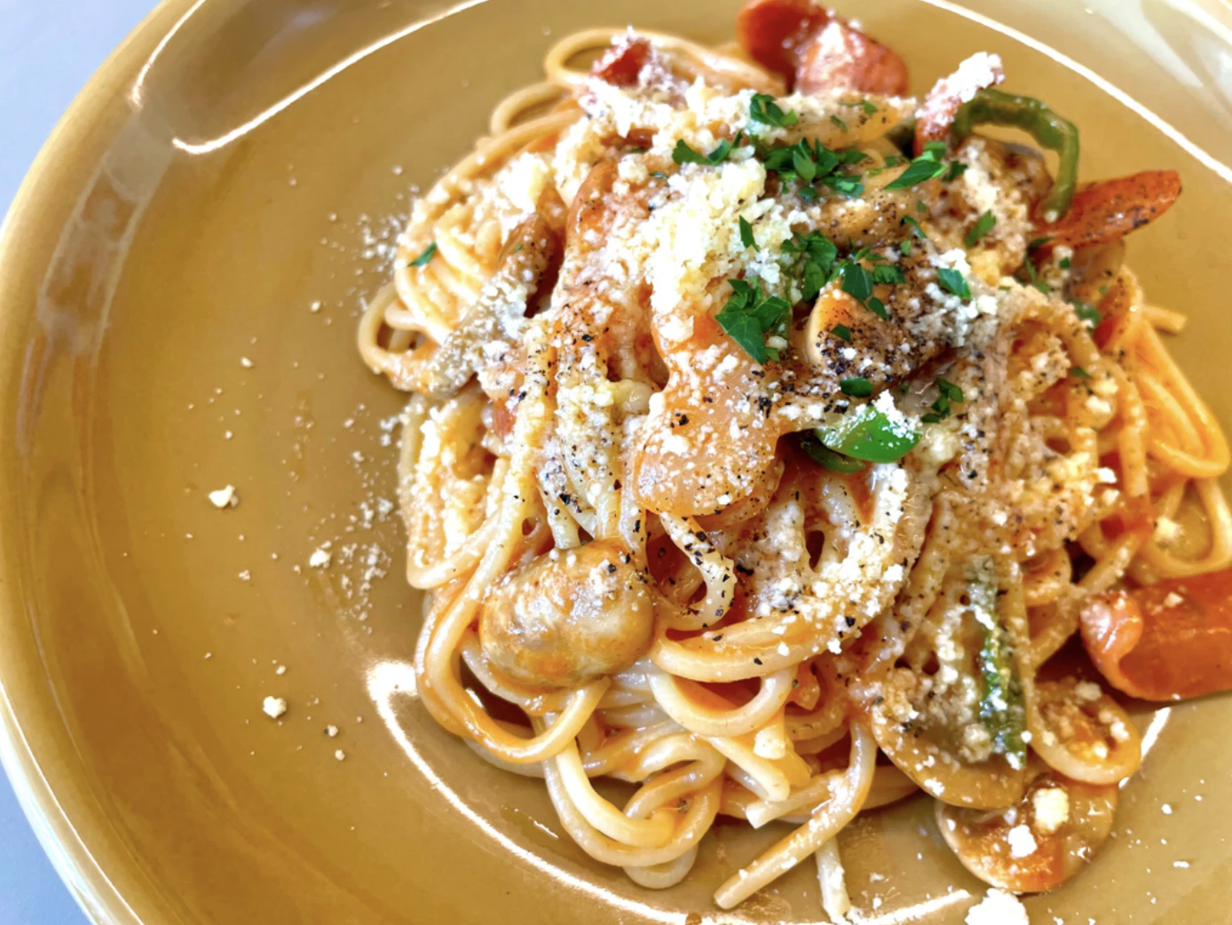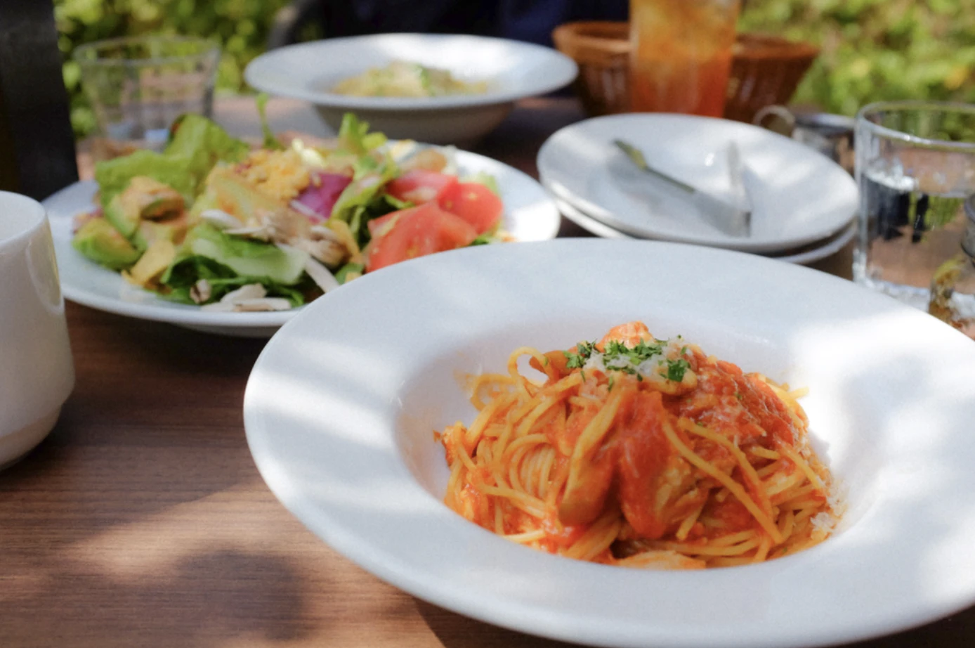 一歩引いて料理全体を映すこと。その料理を「どこで誰との食事シーンだろう?」など見る人のイメージを膨らませる効果があります。カメラを引くことで他の空間が生まれるので、アイテムなどで自分なりのスタイリングができます。