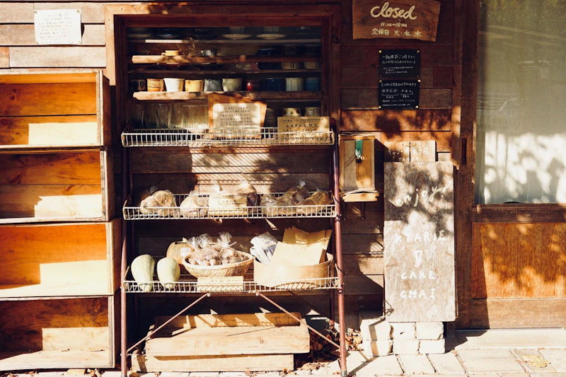 木を使ったナチュラルなディスプレイに、暖かい日差しがほっこりする一枚です。