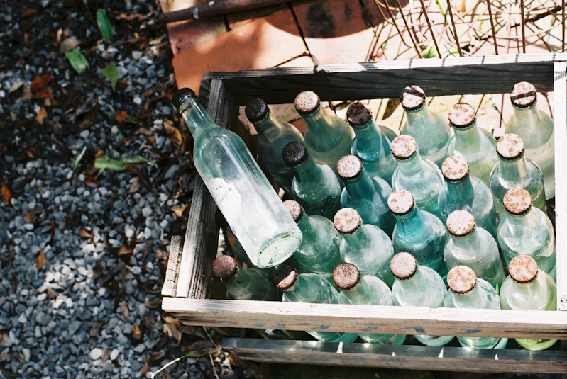 昔のサイダーの瓶が放置されたシーンを切り取った一枚。
