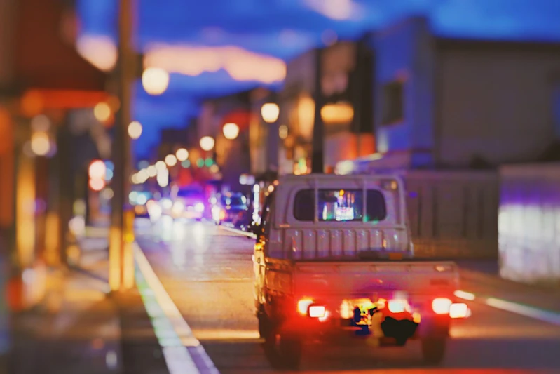 いつもの帰り道に、夕焼・商店街の灯り・車のライトが綺麗だなーと思って撮った1枚だそうです。