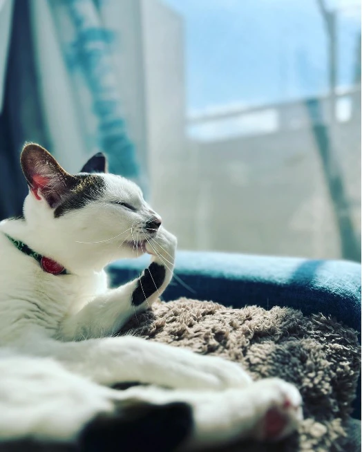 窓際に柔らかな太陽が差し込んでいて、温かいスポットだからくつろげるのかもしれませんね。