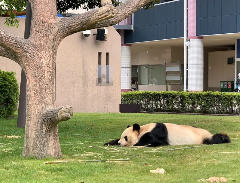 日本でパンダを見られる動物園の一つ、アドベンチャーワールドで撮影した一枚。暑さのためか、それともヒマなのか、ぐったりと寝そべるパンダの様子が可愛らしいですね。癒される人が続出です。