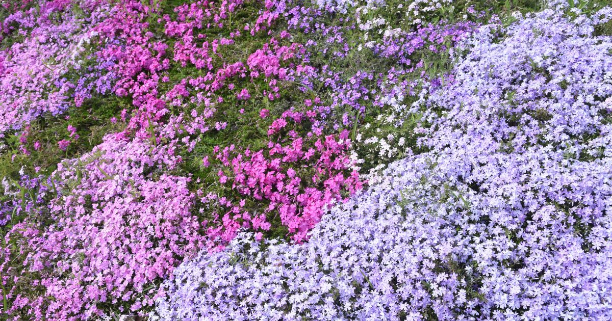 芝桜は、地面に桜のような鮮やかな花を咲かせる花で、4月下旬から5月上旬にかけて見頃を迎えます。ピンク色の絨毯を敷き詰めたような綺麗な風景が一面に広がり、春の被写体としておすすめです。