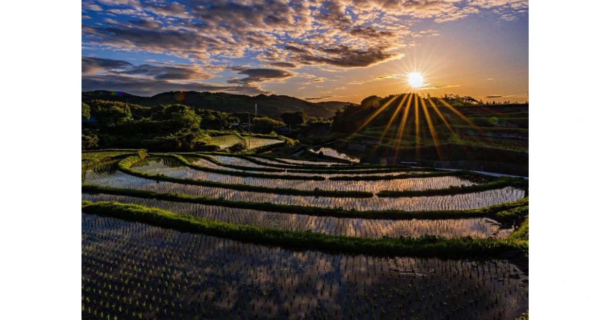 棚田は、山の斜面等に階段状に作られたもので、地域によっては4月下旬頃から水が入ります。水が入った棚田には、水面に空や雲が映り、幻想的な風景が広がります。このように棚田の撮影では、水面等の反射を利用したリフレクション写真が楽しめるところがポイントです。また、棚田は、撮影の時間帯でも異なる表情を魅せてくれるので、楽しんで撮影ができます。
