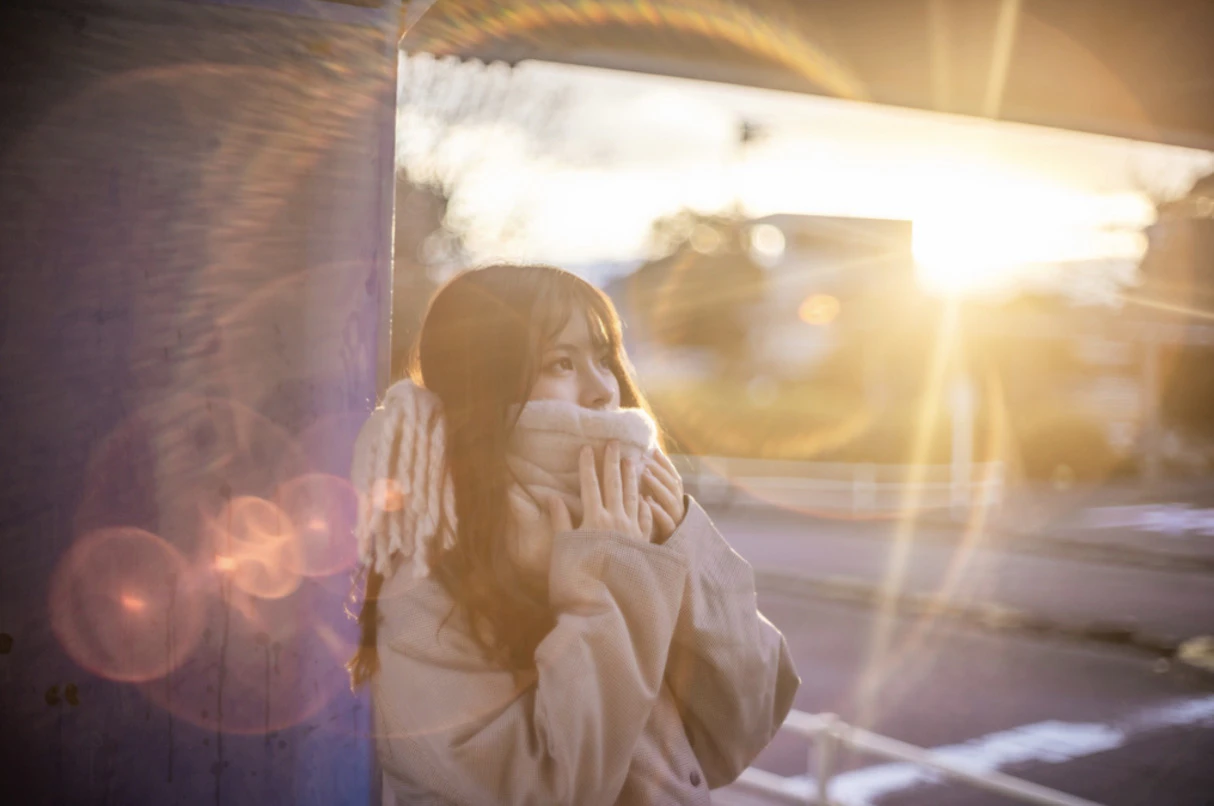 光を半分だけ当てると光と影の部分ができて、クールな印象になります。日陰になっている場所から顔半分だけ日向に出てみたり、太陽の光と体の影が両方映るようにしたりと、表現は様々です。一枚の写真に光と影があることでメリハリが生まれ、シャープな仕上がりになるでしょう。