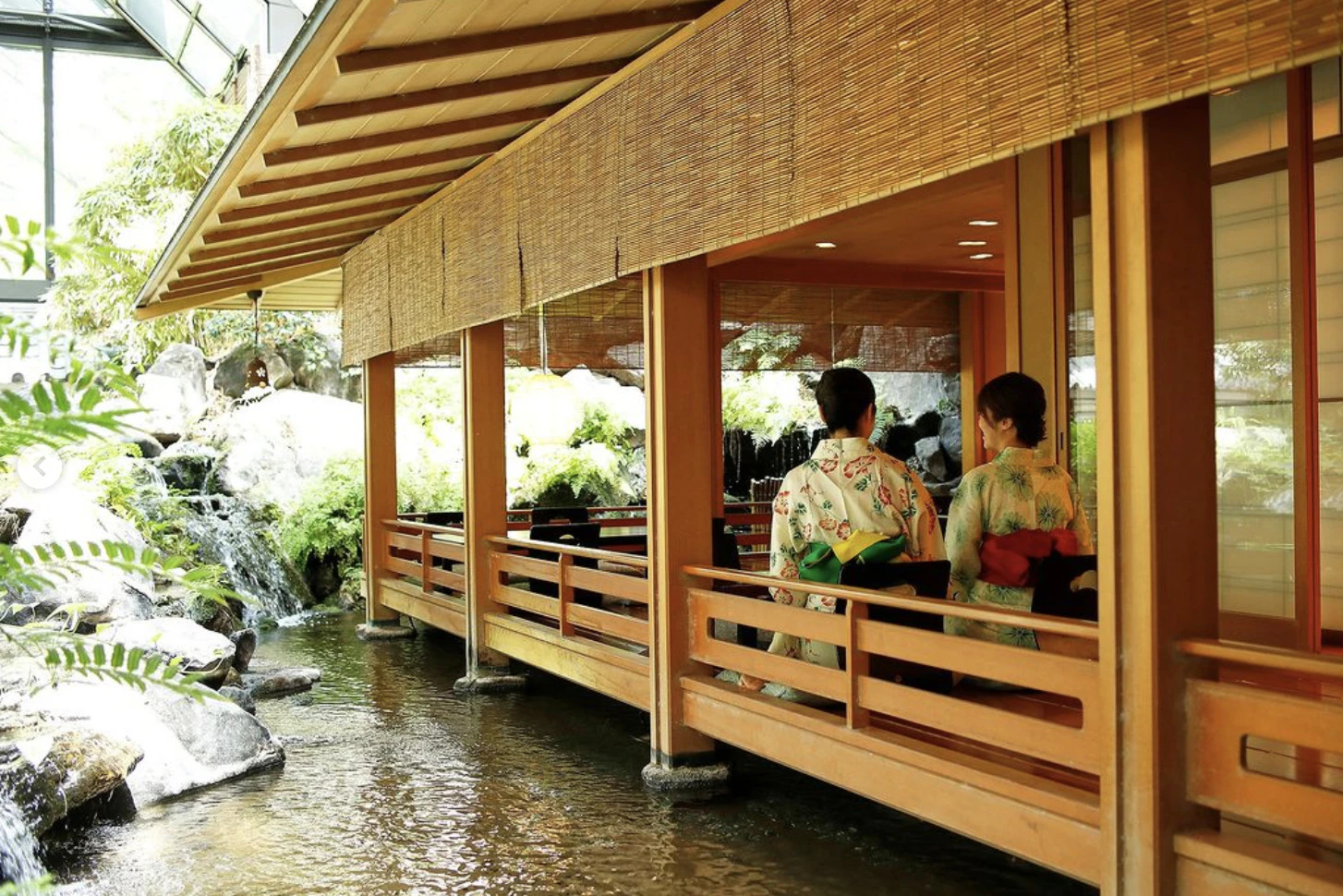 ラウンジやカフェ、目黒川を望むレストランなどと共に、吹き抜けには日本庭園が広がります。