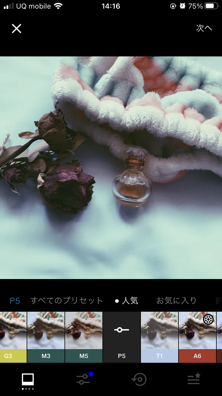 「ナチュラル」な加工には、無料版の「P5」、有料版の「A4、Q2」フィルターがおすすめ!