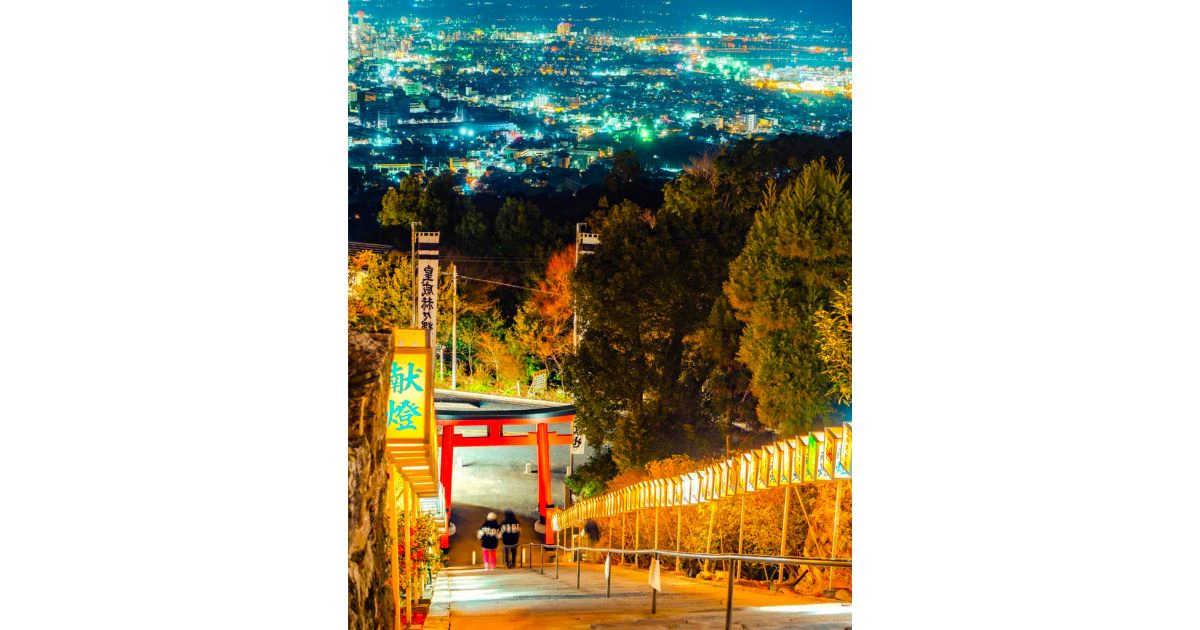 8月に行われる「献灯際」と言われるお祭りの時の高良大社と下にある夜景の街並みの写真です。若そうな2人組がいますが、お祭りと言う夢の世界から、階段を下り現実へと戻っていくような、そんな儚さも見られます。金賞であるのも納得の作品ですね!