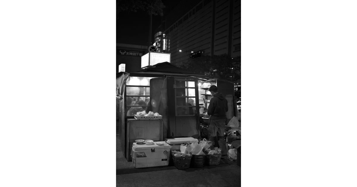 福岡の天神の屋台を捉えた写真です。屋台の写真を撮るとき普通は暖簾から漏れ出す屋台の光や提灯などを撮りがちですが、撮影者が注目したのは屋台裏と店員さんです。こういった独創的な視点は非常に素晴らしいです。