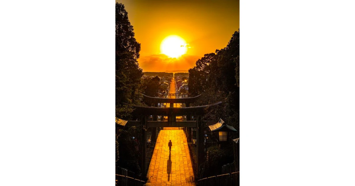 撮影者も応募時のコメントでおっしゃられていますが、この構図は2月下旬と10月下旬の年2回しか撮ることができない、宮地嶽神社の「光の道」として有名な風景です。更にこの撮影者は単なる夕日ではなく、雲の上に乗っかった状態の神々しい夕日を捉えています。こういった運も撮影者の実力のうちだと思えるくらい魅力的な写真になっていますね!