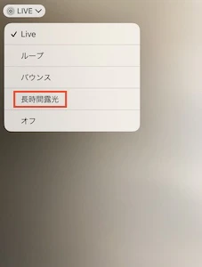 Live PhotosをONにして撮ったあと、写真を開いて「Live→長時間露光」に変えるだけ。