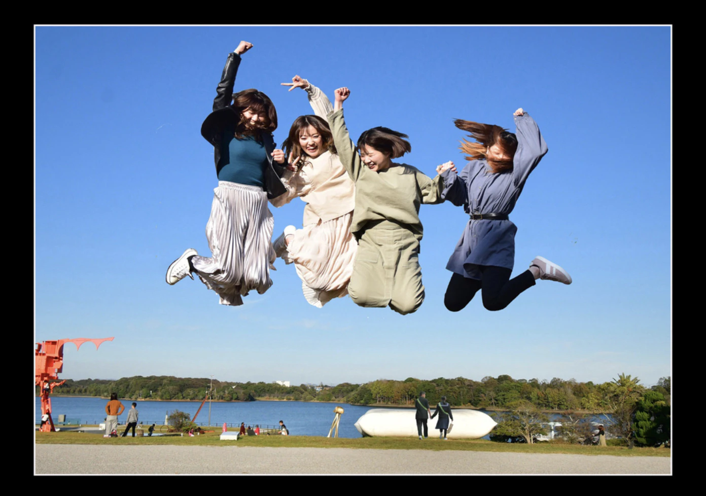 例えば人が飛んでいるような躍動感を演出した写真です。躍動感を出すにはジャンプを使います。ジャンプにも軽いジャンプ、全力で飛ぶジャンプなどさまざまですが、立って撮る写真には出せない、躍動感のある面白い写真が撮れます。