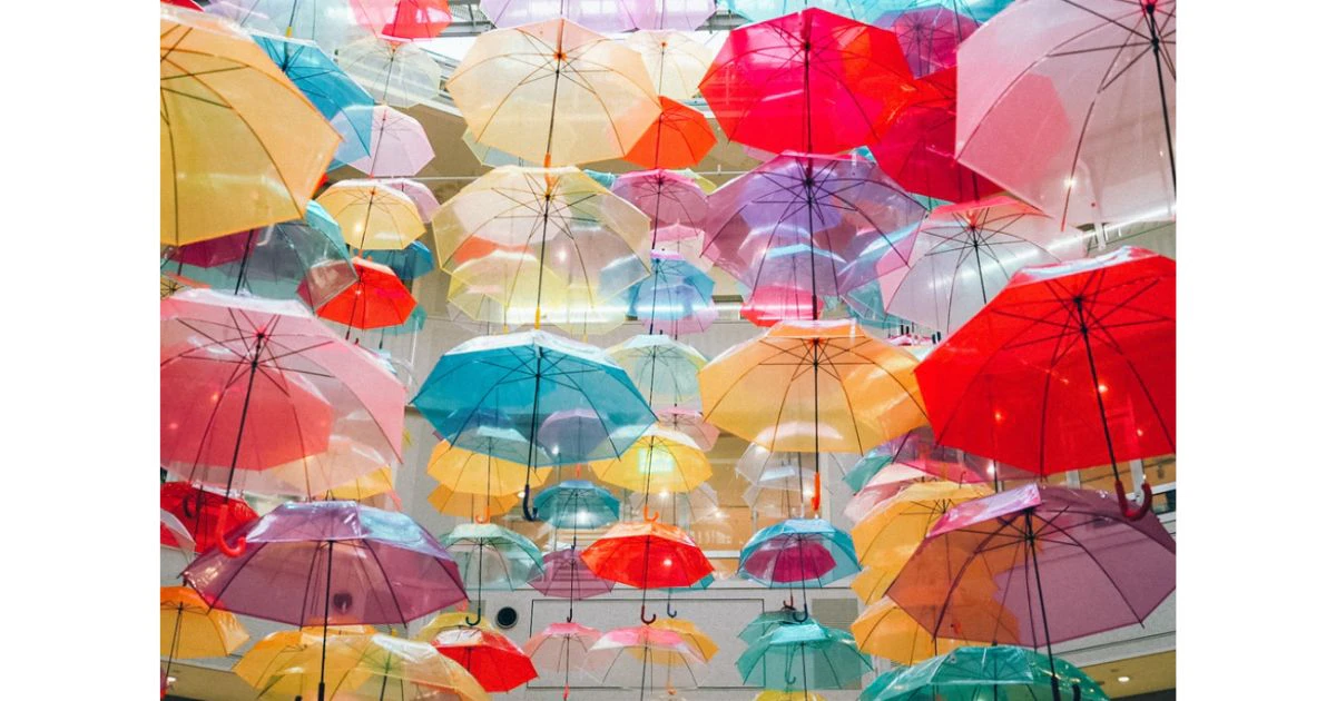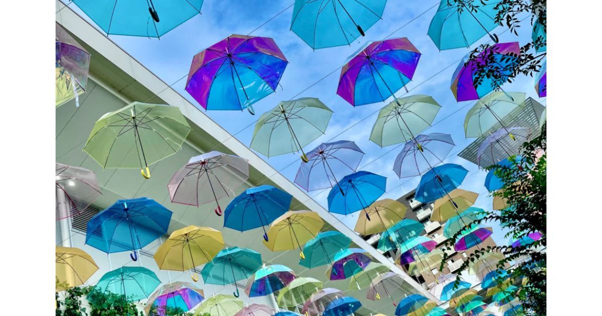 アンブレラスカイは、頭の上にたくさんのカラフルな傘がつるされたものです。ポルトガルで、芸術祭の一環として2012年に始まり、今では日本各地でそのイベントが開かれるようになりました。カラフルな傘が可愛く、じめじめした梅雨で、どんよりした気持ちを明るくしてくれます。
