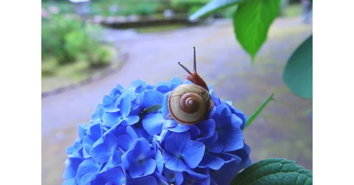 梅雨を代表する生き物の「カタツムリ」。カタツムリは、雨が多く、気候もちょうどいい梅雨の時期によく見られます。紫陽花との写真の相性も良く、紫陽花の上でのんびり過ごすカタツムリが撮影できます。