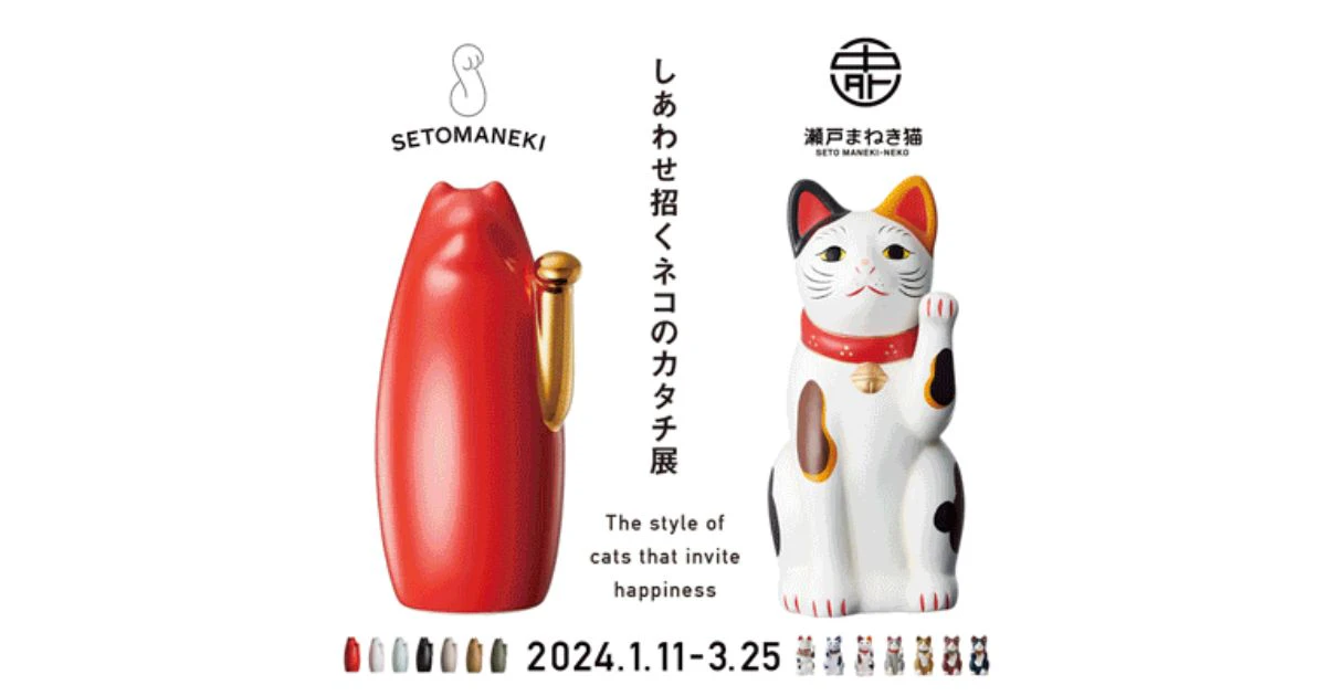 古くからしあわせを招く縁起物として愛されてきた「招き猫」にスポットを当てた展示。やきものの産地瀬⼾市で⻑きにわたり招き猫を製造してきた「中外陶園」が、招き猫の秘密を紐解きます。