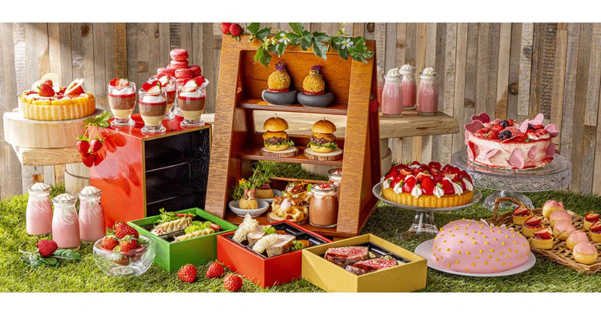 旬のイチゴをふんだんに使ったスイーツやドリンクが楽しめるグルメフェアです。イチゴを使用した目も鮮やかなパフェやケーキ、イチゴ香るお酒など、多用なラインナップも魅力のひとつ。