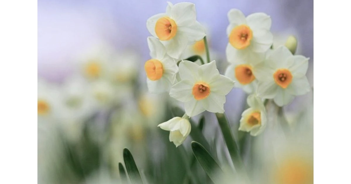 水仙は早いものは、11月頃から咲き始め、4月頃まで長く鑑賞できる花です。黄色と白色の清楚な花で、香りも良く癒される被写体です。3月に見られる水仙は、「ラッパ水仙」や「口紅水仙」などの遅咲きのもので、花が一回り大きいという特徴があり、インパクトを与えてくれます。