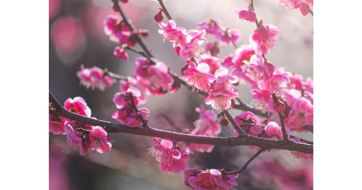梅は2月〜3月に見ごろを迎える花で、2月は平野部、3月は山間部の梅が見ごろです。山間部の斜面の高さを活かした梅の写真が撮影でき、平野部とはまた違う構図で写真が撮れます。また、梅にもさまざまな種類があり、色も異なるので趣が異なる写真が撮れるのもポイントです。
