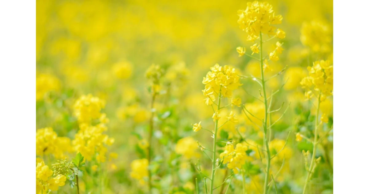 2月〜4月頃にかけて、土手や道端など様々な場所で見かける黄色い菜の花。春の訪れを感じさせてくれる花のひとつです。満開の菜の花畑は、鮮やかな黄色が一面に広がり、とても綺麗です。同じ時期に咲く桜や青空とのコラボレーション、ボケを活かした構図など撮影のバリエーションが豊富にあります。