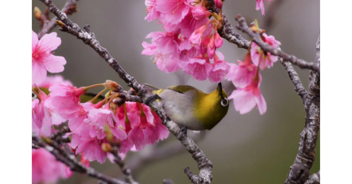 春を代表する野鳥のメジロ。鮮やかな黄緑色の羽と目の周りが白くふちどられた小さな鳥です。花の蜜や果実などが好きで、花の蜜を吸う姿がよく見られます。そのようなメジロと相性が良い被写体が梅や桜です。メジロの鮮やかな黄緑色の羽と梅や桜の色が良く合い、「和」が感じられる写真が撮影できます。