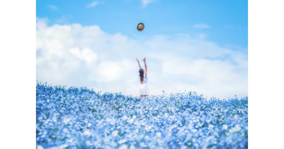 5月の被写体としてネモフィラもおすすめです。全国各地にネモフィラのスポットがあり、見頃を迎える5月は、ネモフィラがSNSでも話題になります。青い可憐な花がかわいく、ネモフィラが一面に広がる風景はとても綺麗です。青空とネモフィラの異なる青色がとても美しく、素敵な1枚が撮影できます。