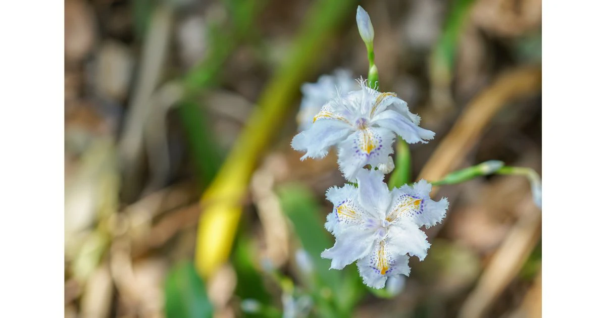 各地の低地や森林などの湿ったところで見られるシャガ。シャガも4月〜5月に開花し、5月に見頃を迎えます。シャガは白い花びらに濃い紫と黄色の模様があり、少し不思議な花びらを持つ花なので、マクロレンズ等で撮影するのも面白いです。
