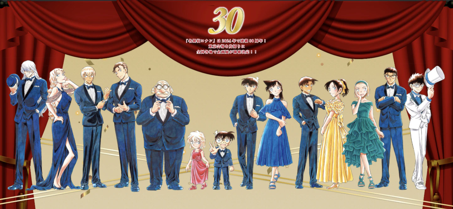 連載30周年記念を迎えた「名探偵コナン」の歩みを振り返る企画展です。貴重な「名探偵コナン」初期設定資料などファン必見の内容です。