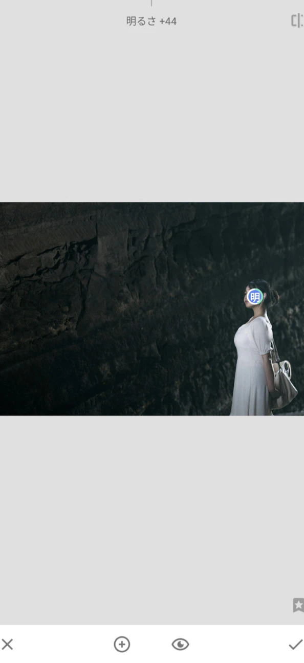 部分調整したい部分の画面をタップすると青丸が出てきます。次に画面を指でスライドすると、明度、コンストラスト、彩度、ストラクチャという並びが出てきます。使いたい機能になったところで指を離し、調整します。