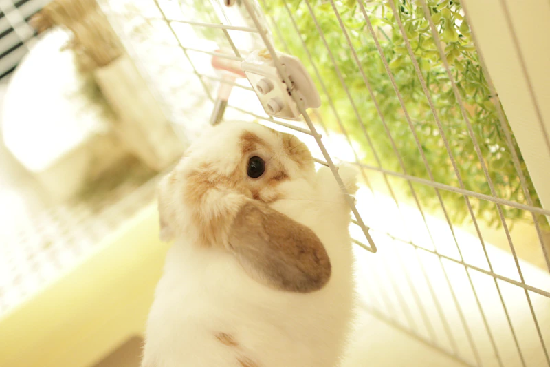 お外に出たがっているのは垂れ耳が可愛いウサギ。