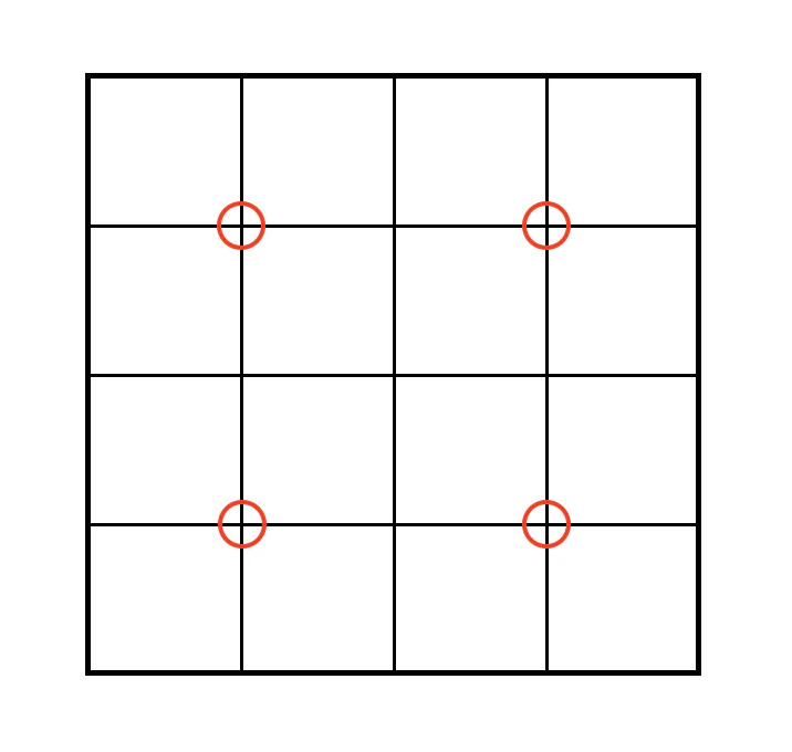 名前の通り、縦横に四分割してクロスする点やラインに被写体を置きます。