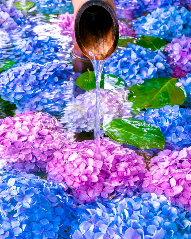 今回は「花手水舎」をテーマに美しい花々の作品をご紹介します。