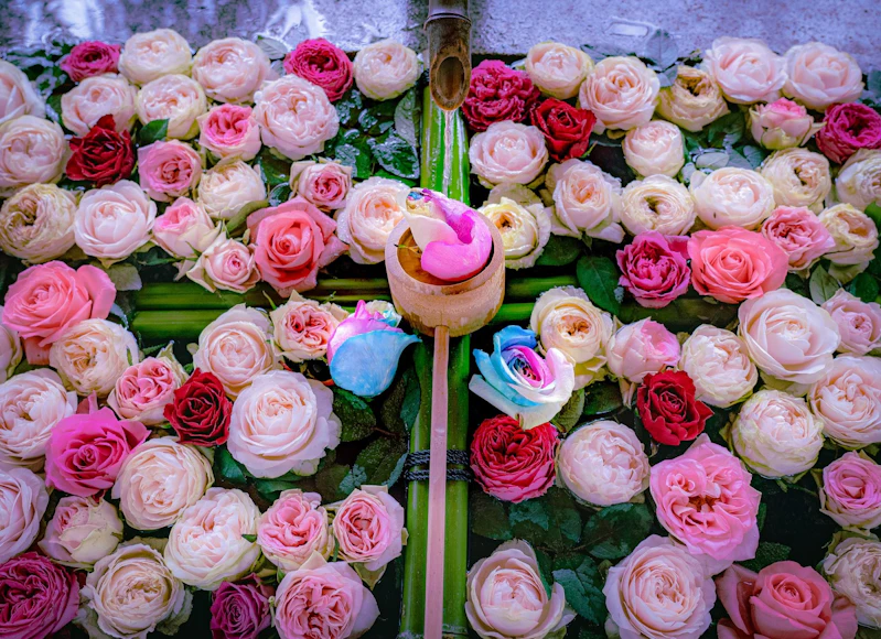 今回はカラフルで美しい花手水舎の数々をご紹介します。